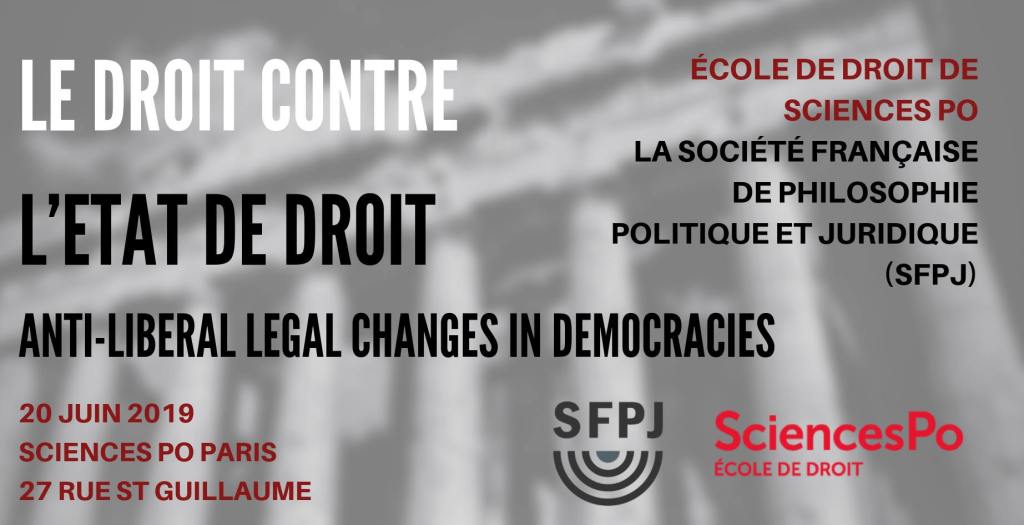 - Co-organisation of a symposium : Le droit contre l’Etat de droit – Anti-liberal Legal Changes in Democracies, June 20, 2019, Sciences Po Paris, with SFPJ Société française pour la philosophie et la théorie juridiques et politiques.