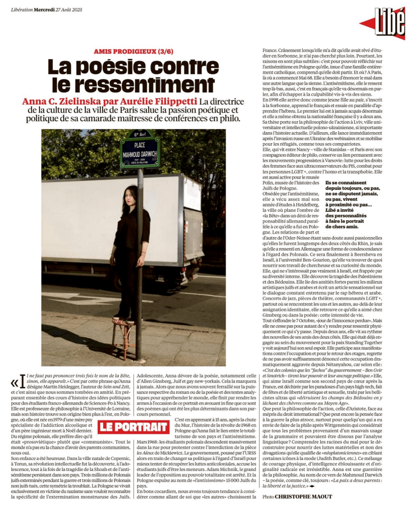 Son enfance a été heureuse. Dans la ville natale de Copernic, à Torun, sa révolution intellectuelle fut la découverte, à l’adolescence, tout à la fois de la tragédie de la Shoah et de l’antisémitisme persistant dans son pays. Trois millions de Polonais juifs exterminés pendant la guerre et trois millions de Polonais non juifs tués, cette symétrie la troublait. La Pologne se vivait exclusivement en victime du nazisme sans vouloir reconnaître la spécificité de l’extermination monstrueuse des Juifs. Adolescente, Anna dévore de la poésie, notamment celle d’Allen Ginsberg, Juif et gay new-yorkais. Cela la marquera à jamais. Alors que nous avons souvent ferraillé sur la puissance respective du roman ou de la poésie et des textes analytiques pour appréhender le monde, elle finit par rendre les armes à l’occasion de ce portrait en avouant in fine que ce sont des poèmes qui ont été les plus déterminants dans son parcours personnel.