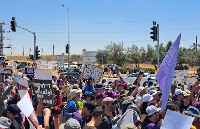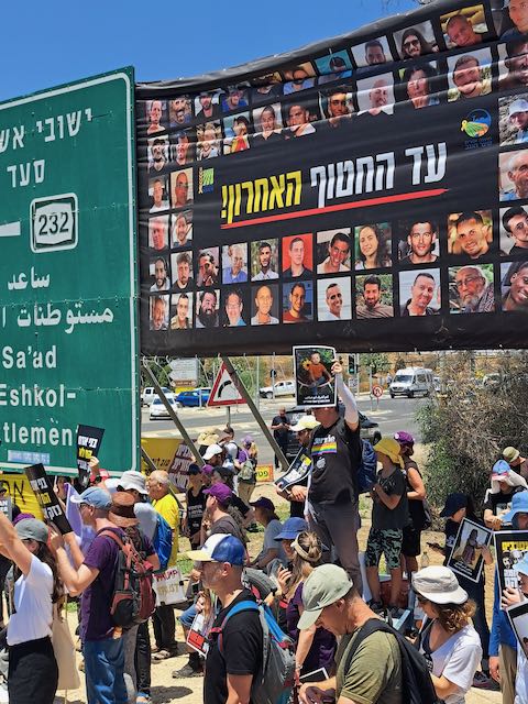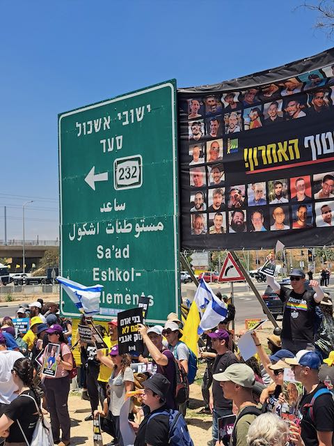 The demonstrations at the Gaza border – “to stop the massacres, the famine, and to bring the hostages back” – are continuing. A second one took place on May 23 2025, and it is this one that is shown in the photos I took there.