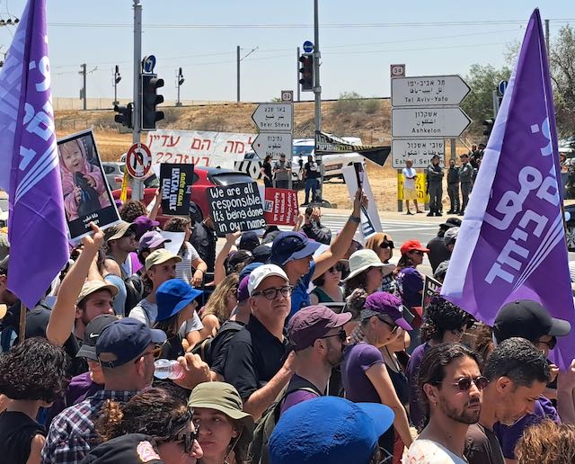 Just before that, Alon-Lee Green, the national co-leader (with Rula Daood) of the Standing Together movement, declared in his call to protest that it was “forbidden to close our eyes, forbidden to remain indifferent” in the face of government actions targeting citizens and children in Gaza, as well as the hostages.