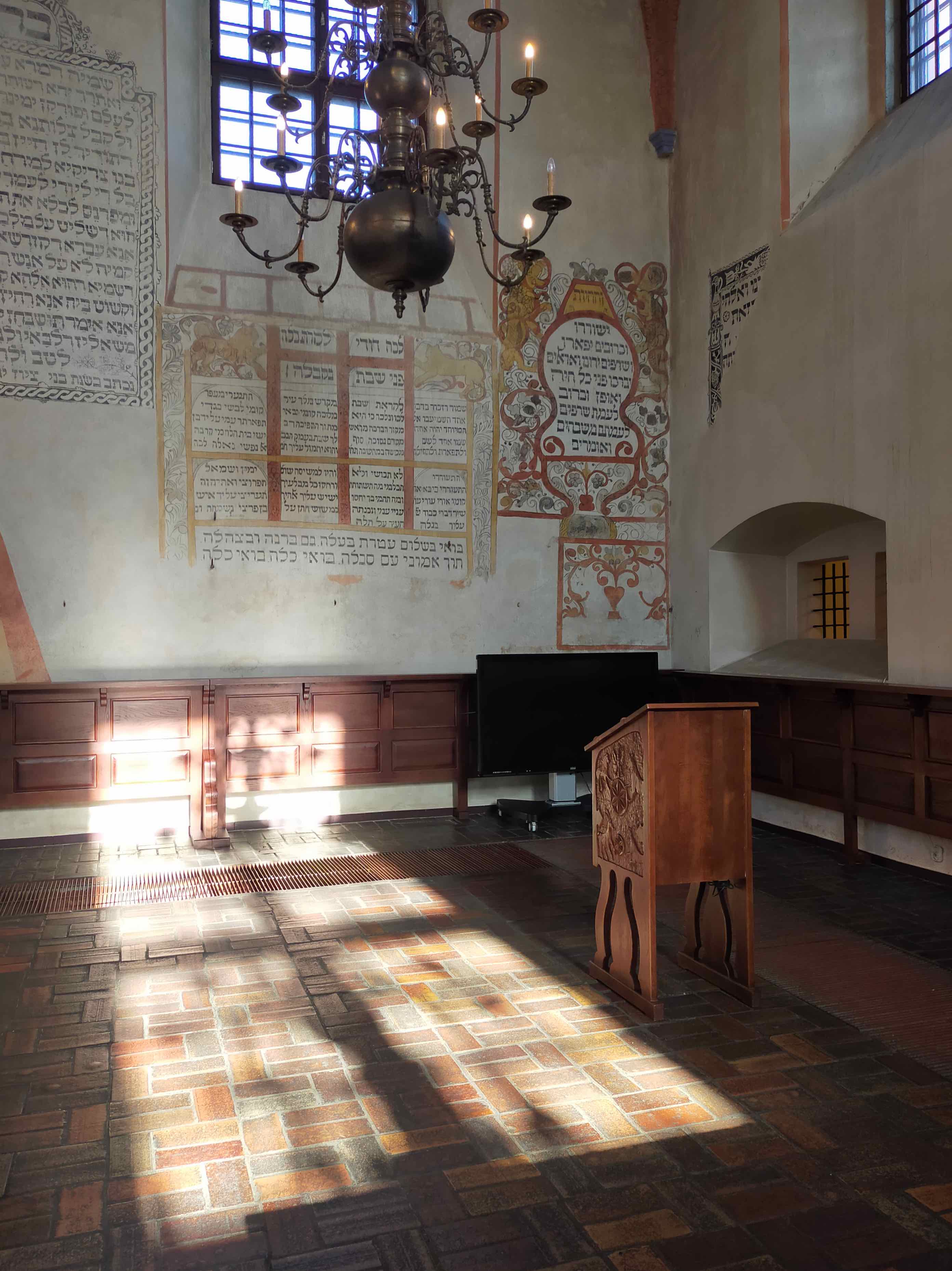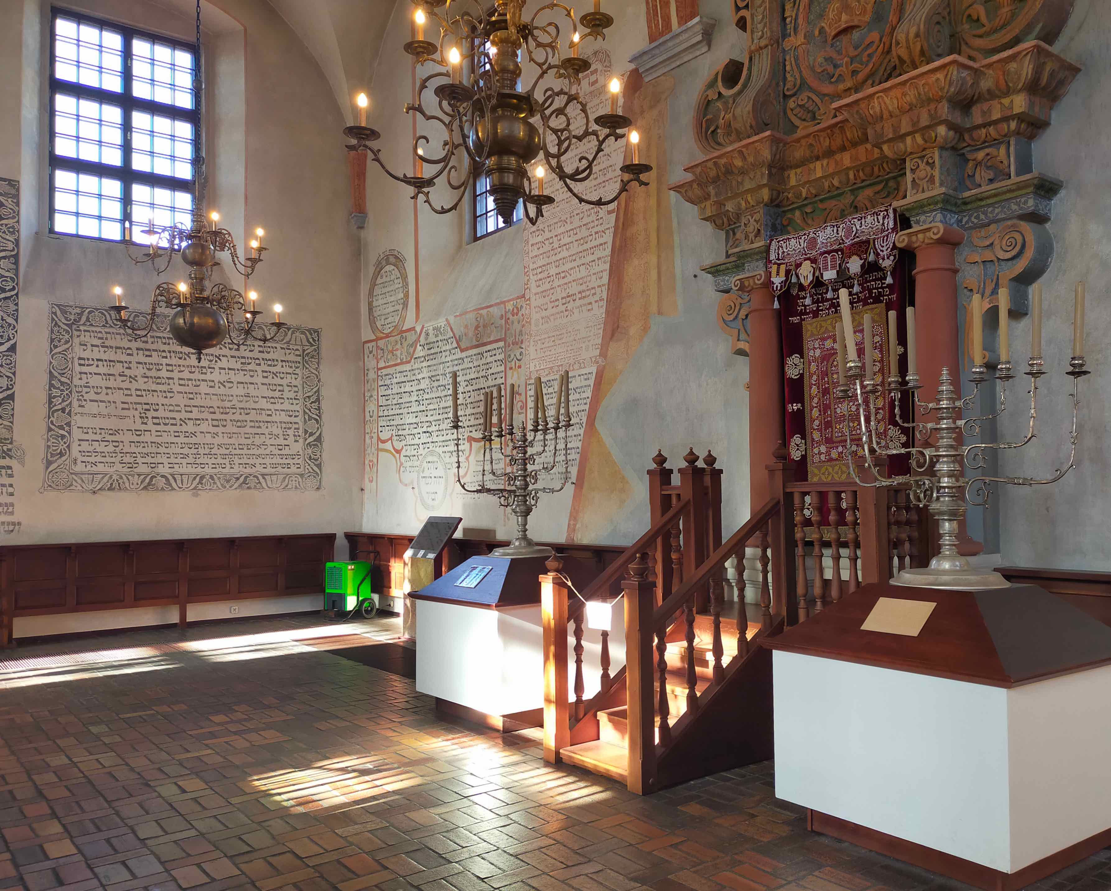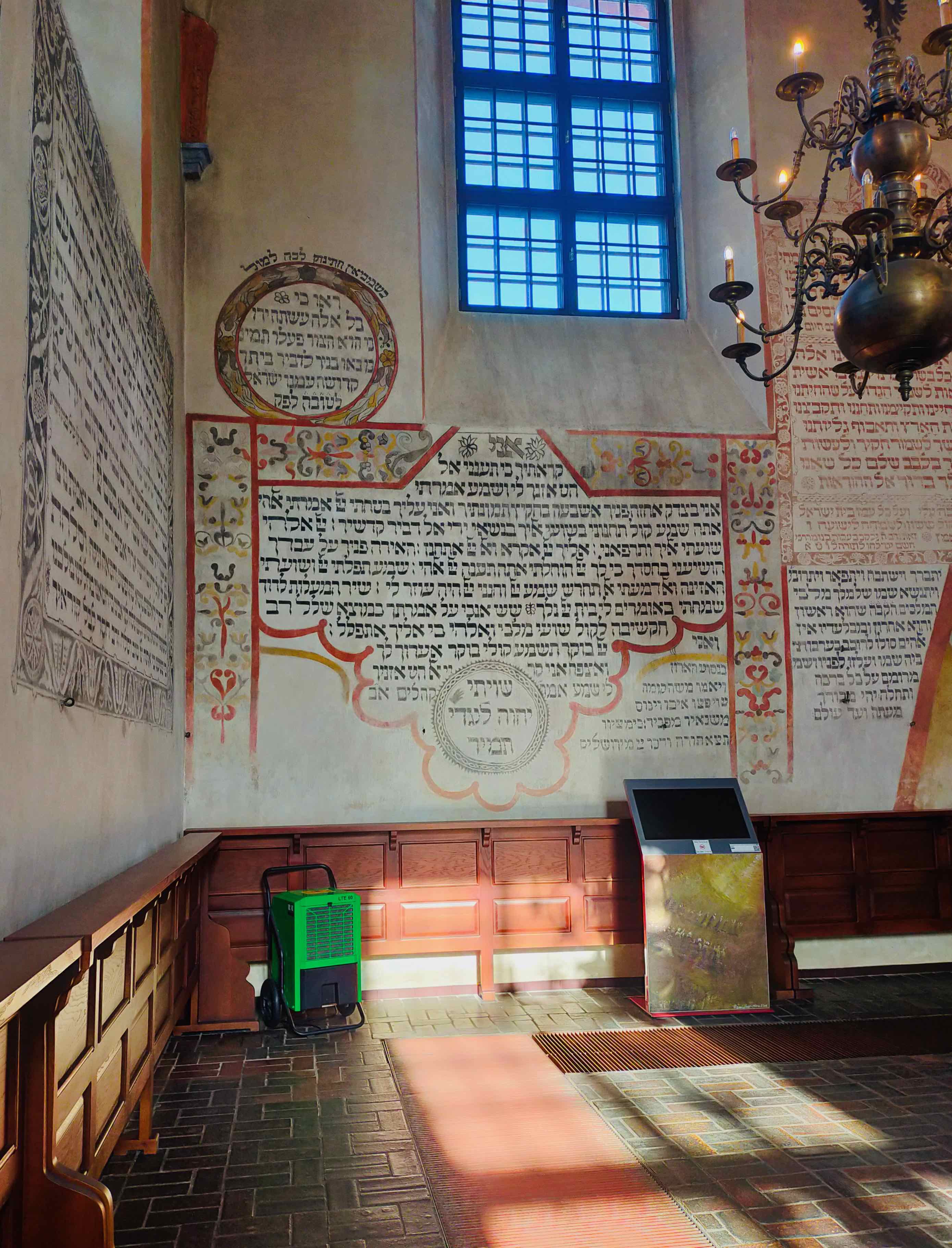 Tykocin is a small town in north-eastern Poland, with a mindblowing synagogue: built in mannerist-early Baroque style, was built in 1642. In the late 1970s, “the historic wall paintings, most of which are decorative texts of Hebrew prayers, were restored. The elaborate, decorative ceiling was not reconstructed although some idea of the style can be gleaned from the design of the Torah Ark” (wiki).