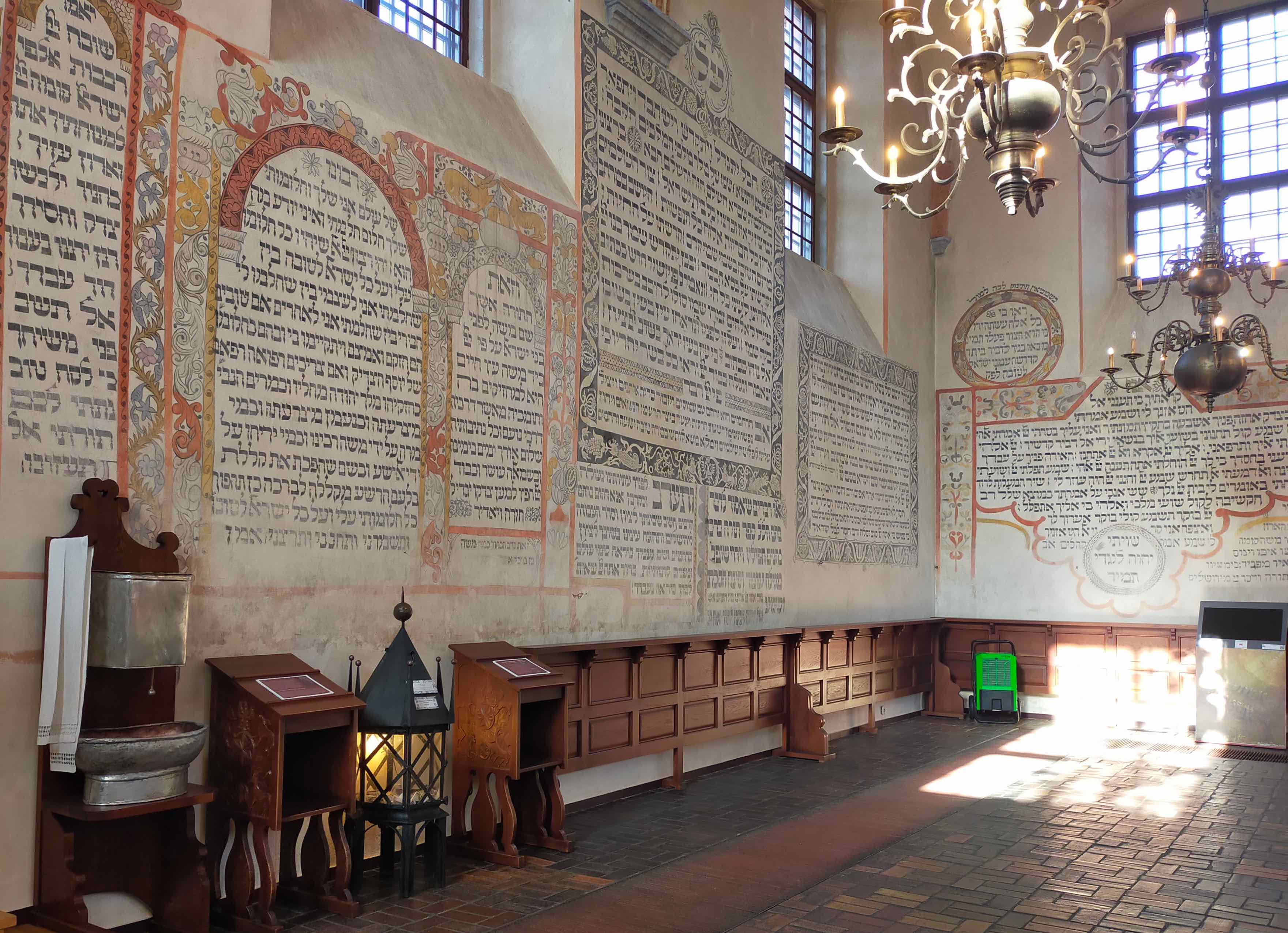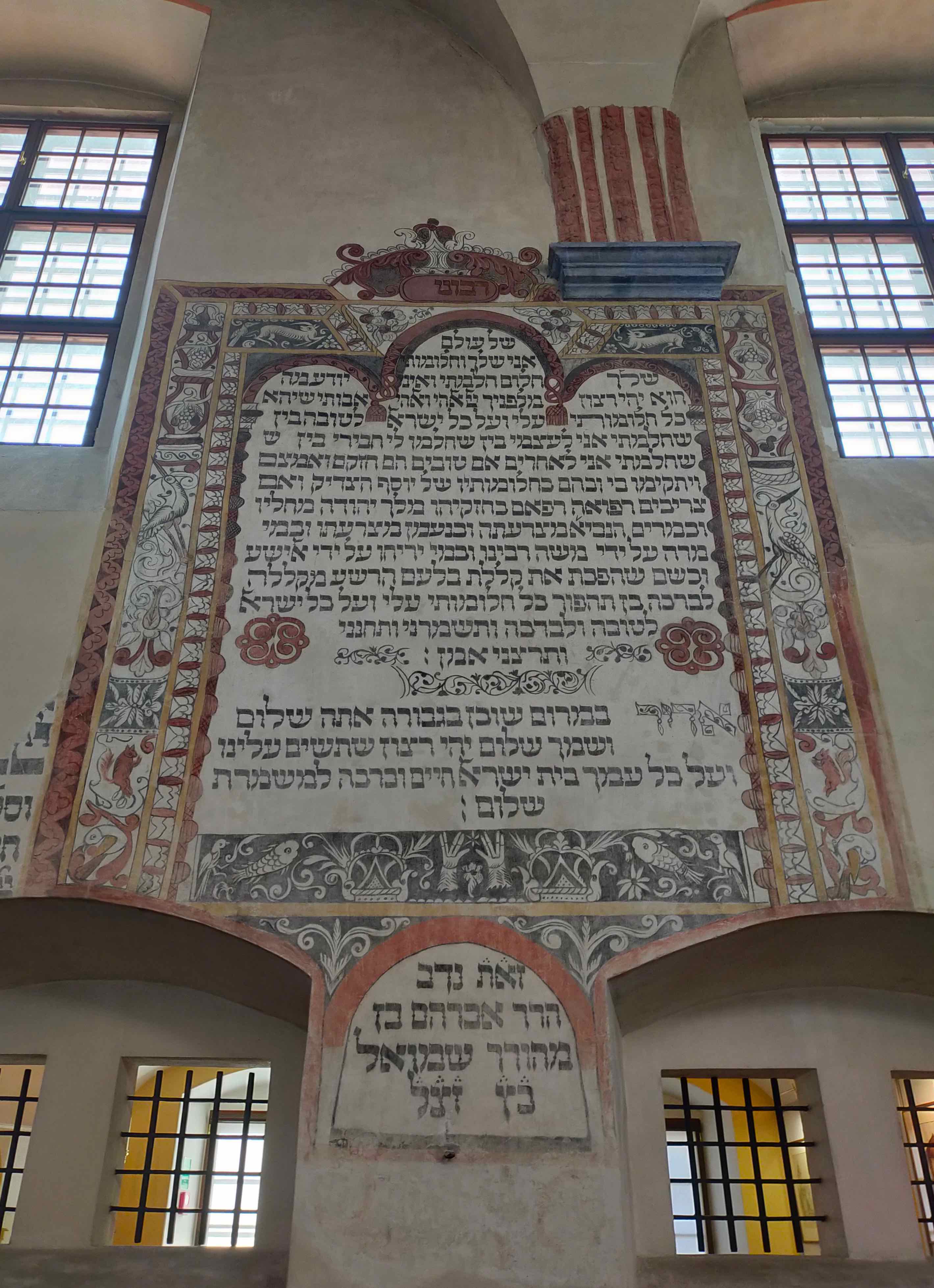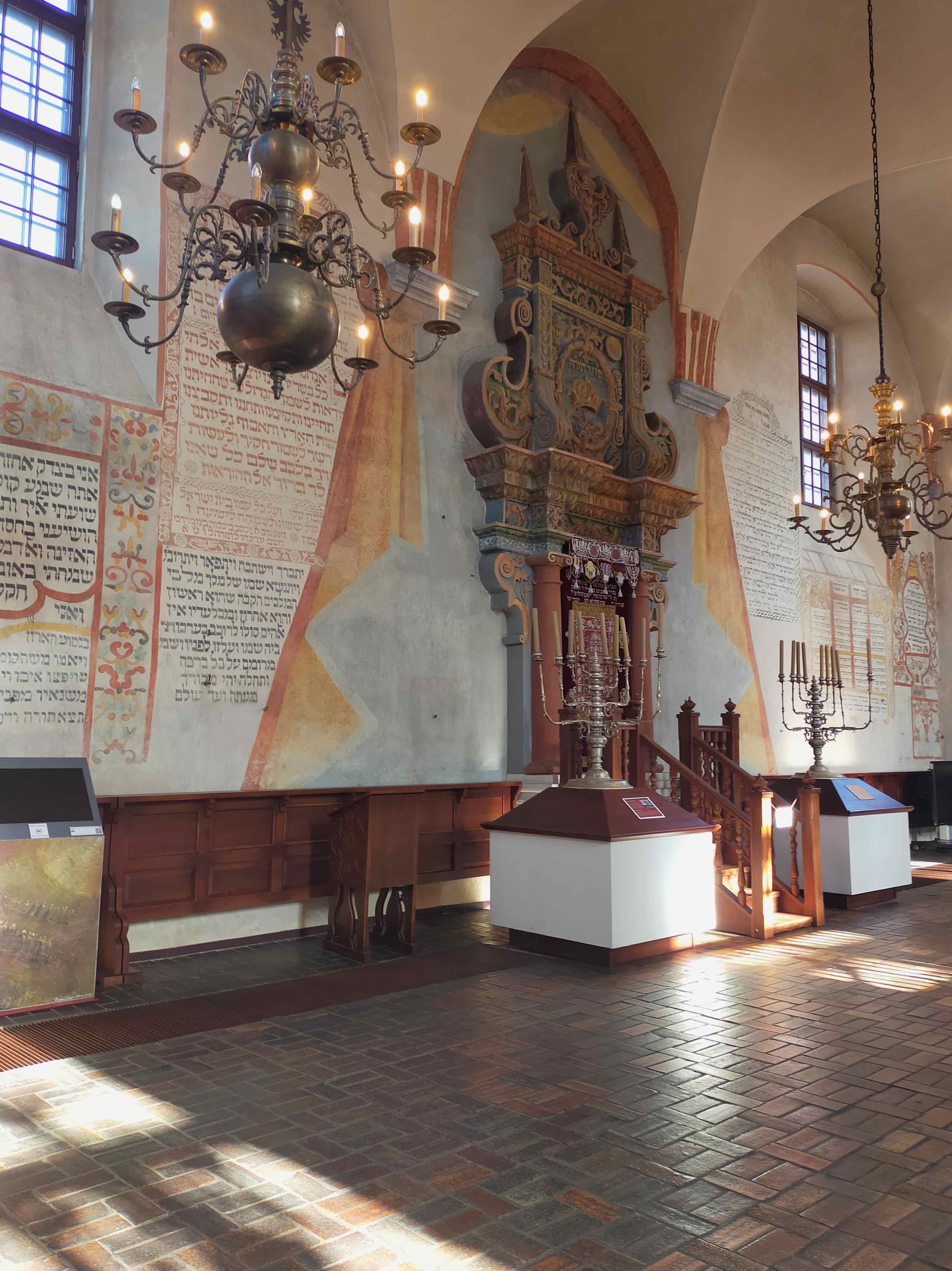 Tykocin is a small town in north-eastern Poland, with a mindblowing synagogue: built in mannerist-early Baroque style, was built in 1642. In the late 1970s, “the historic wall paintings, most of which are decorative texts of Hebrew prayers, were restored. The elaborate, decorative ceiling was not reconstructed although some idea of the style can be gleaned from the design of the Torah Ark” (wiki).