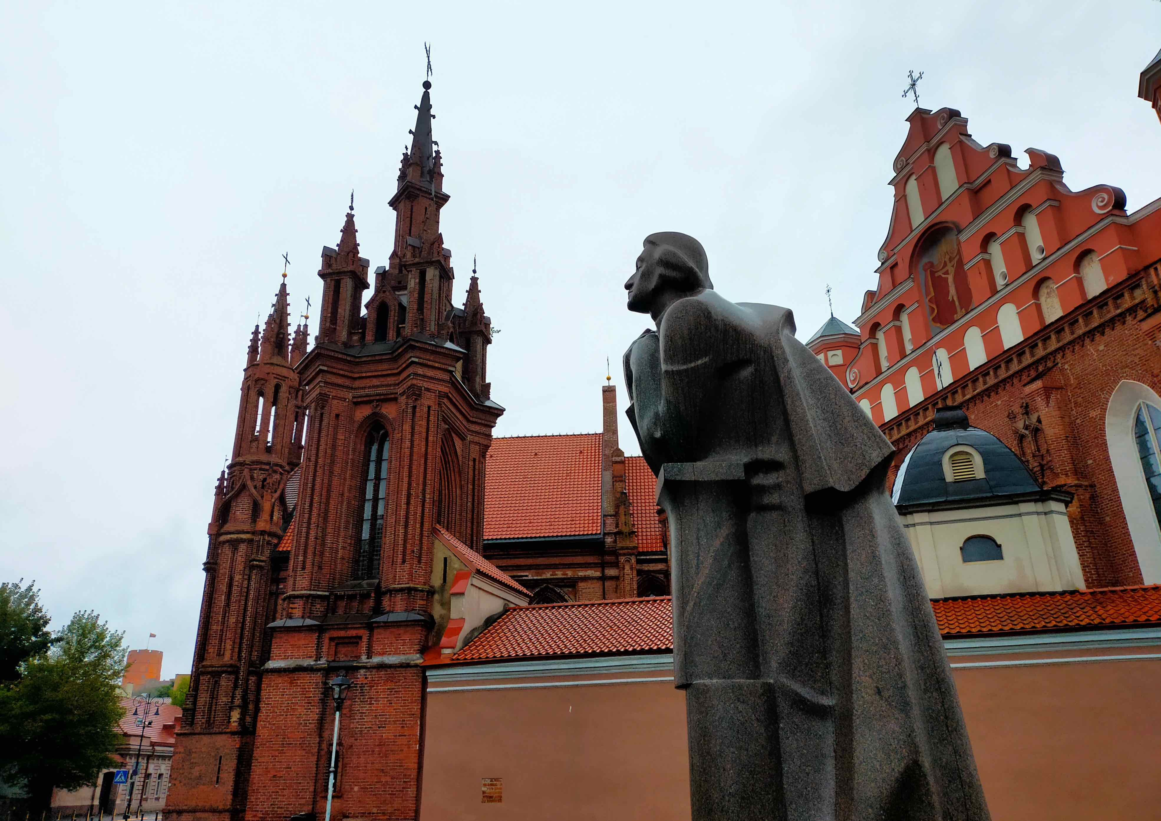Finally, a statue of Adam Mickiewicz [Gediminas Jokūbonis, 1984] and the St Anne Church next to the Vilnia river (Wilejka).